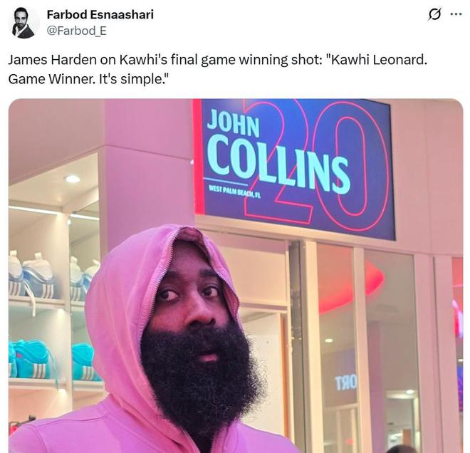 小卡34+5+5+6压哨绝杀!哈登24分14助累惨泰伦卢谜之操作坑苦快船